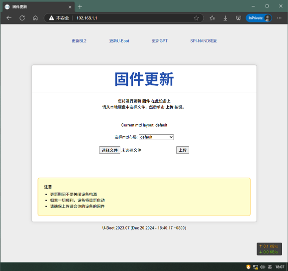 要进入 Uboot 按着 Reset 再通电,待 Led 闪烁4次后停止闪烁了,访问 192.168.1.1 即可进到 Uboot 的 web 管理界面了。