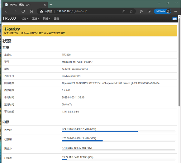 第三步,过程大约30秒左右后LED会红白交替闪烁20次然后关闭浏览器,因为JS的原因必须关闭后再打开浏览器后,重新访问管理地址 192.168.10.1 熟悉的 Luci界面自然而然就出现在了眼前。